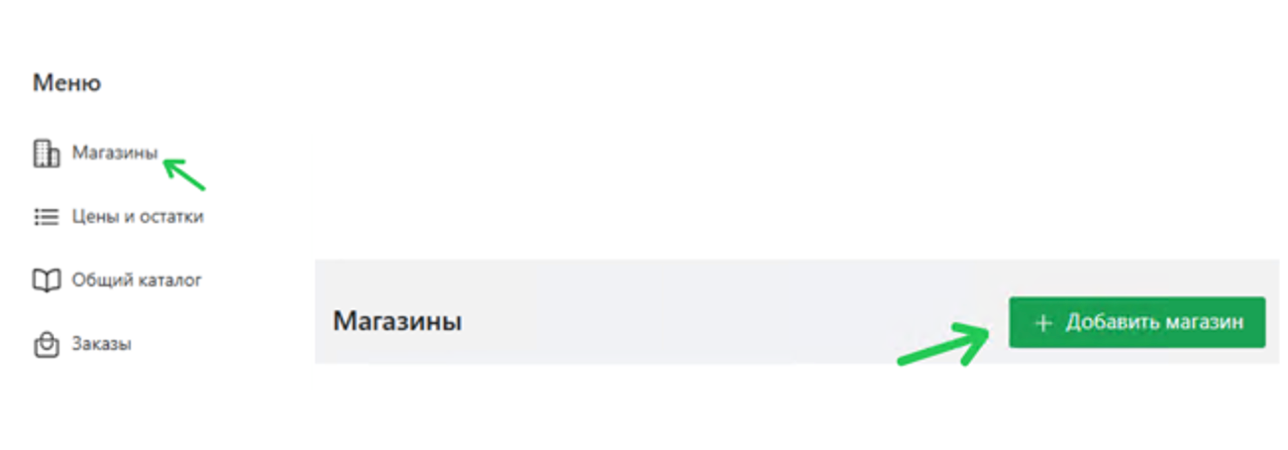 Вы заходите в раздел "Магазины" → нажимаете кнопку "Добавить магазин".