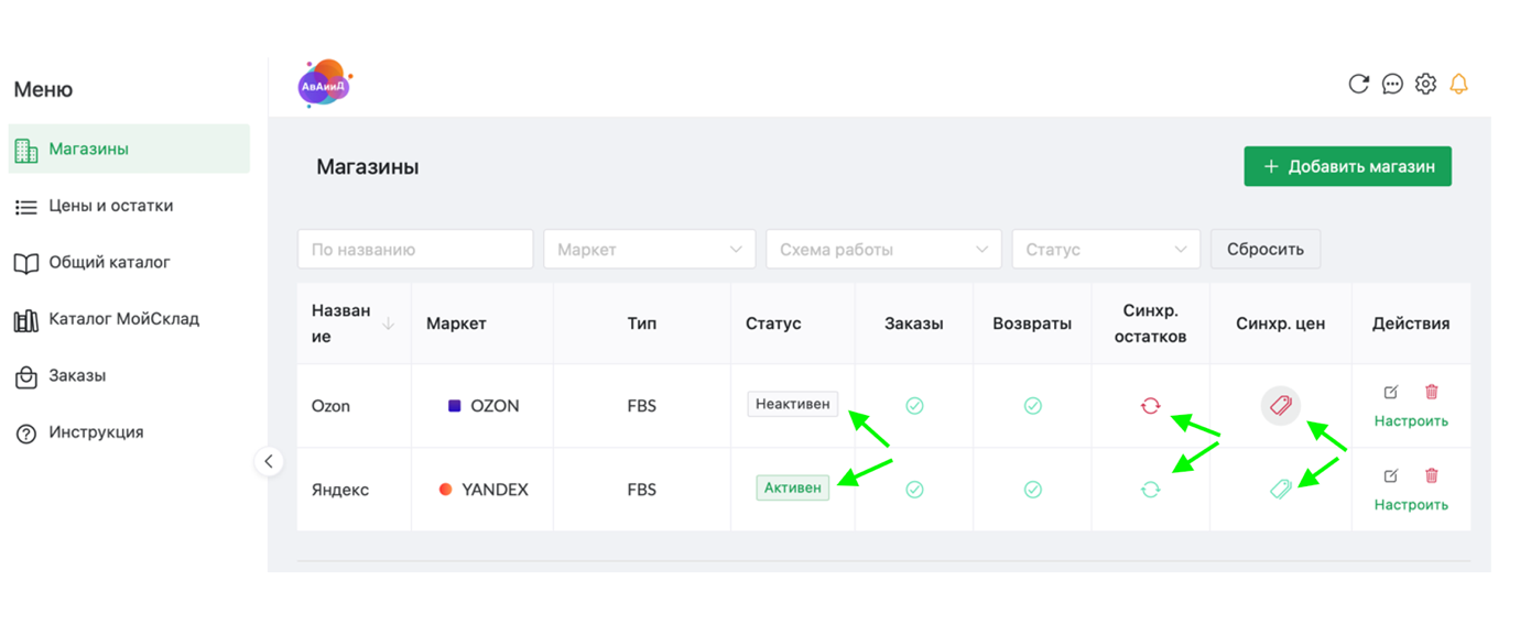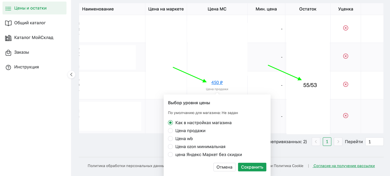 Если вы хотите поменять остатки либо цену, непосредственно в личном кабинете маркетплейса вам нужно отключить на магазине выбранный вами рубильник, чтобы решение не вернуло цену или остатки обратно.